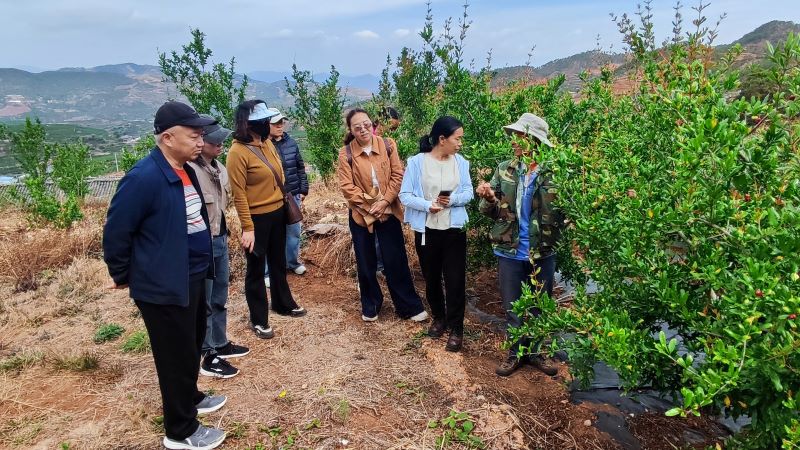 调研组一行实地察看石榴新品种“凉榴1号”试验示范种植基地,详细了解基地种植规模、品种特色、水肥一体化、绿色防控、果园管理及产业发展现状,现场查看石榴长势、病虫害防治、新品种试种进展等情况,与种植户面对面交流生产管理经验、市场销售情况、成本收益及当前面临的实际困难。