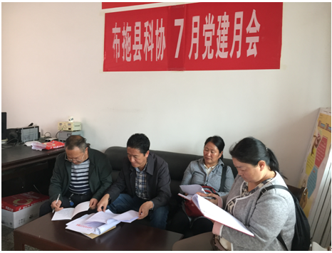 7月13日上午,布拖县科协在办公室召开7月党建月会,在党建月会最后,科协党支部书记、主席吉地沙伍同志为全体党员干部上了一堂“永葆初心本色”的专题党课。
