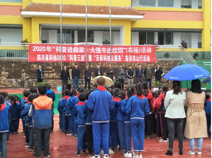 为深入贯彻实施《全民科学素质行动计划纲要》,充分发挥科普大篷车“流动科技馆”独特的科普功能,大力推动全民科学素质的提升,引导民众学科学,用科学、爱科学的良好氛围,助力全州脱贫奔康的顺利实施,在“全国科普日”活动期间,9月11日由四川省科协科普部部长郑俊和凉山州科协党组成员、副主席李勇率领的省科协相关部门、会理县科协、会东县科协、宁南县科协、盐源县科协、木里县科协等兄弟县科协来到布拖县拉达乡中心校和布拖县最大的易地搬迁安置点依撒社区,开展四川省科协“科普三进”暨2020年凉山州“全国科普日”、州科协“科普进彝家·大篷车进校园”活动。布拖县政协党组成员、副主席阿措色子同志在活动现场发表了热情洋溢的致辞。县科协干部职工、县依撒社区搬迁贫困户和拉达乡中心校全校师生参加了活动。