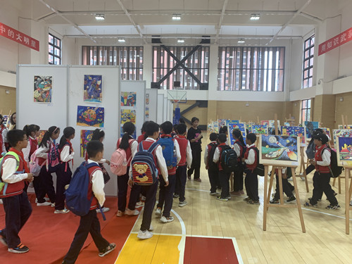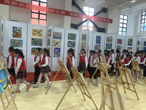 学生们兴致勃勃地在每一块展板前驻足,欣赏每一幅作品的内容,品味每一幅作品背后的小画者热爱祖国、热爱科学、热爱美好生活的情怀。通过参观活动,使同学们充分了解绘画与想象力、科学知识融合的魅力,培养了他们从小爱科学、爱思考、爱绘画,学会以健康积极正确的方式表现个人梦想的好习惯,进一步激发了他们的努力学习科学知识和参加青少年科技创新大赛的热情和积极性。