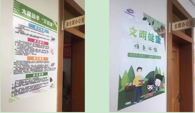 我们在单位办公区域显要位置张贴卫生知识宣传画,大力营造创卫氛围。大力营造创卫氛围。