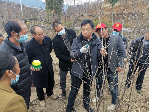 培训结束后,李博士又主动深入田间地头,现场为种植户示范甜樱桃树的修枝、整形、疏花、扭梢、拉枝、刻芽、吊枝等技术,并结合当地小樱桃树的栽种管理、病虫害防治、冬季清园等技术进行了示范培训。参加培训的种植户也积极踊跃的开展实践操作,现场接受李博士手把手的技术指导。